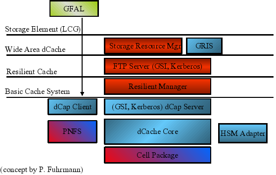 The layer model shown in The dCache Layer Model gives an overview of the architecture of the dCache system.